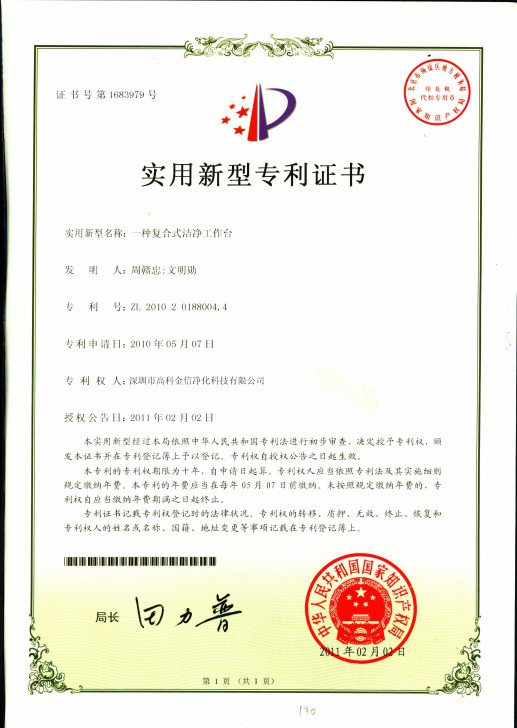 經(jīng)過我公司研發(fā)部門技術(shù)人員的不懈努力、刻苦專研,一種廣泛應(yīng)用于需要局部?jī)艋瘏^(qū)域的“復(fù)合潔凈工作臺(tái)”申報(bào)國(guó)家專利成功。