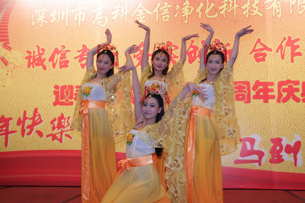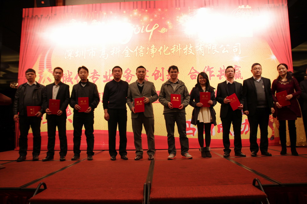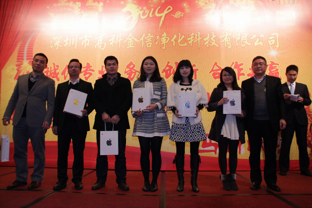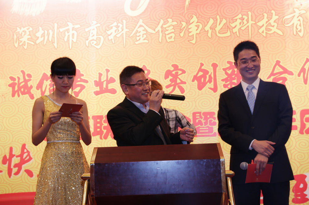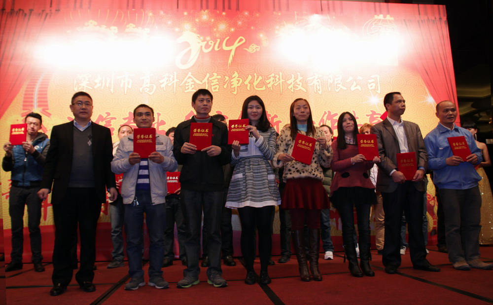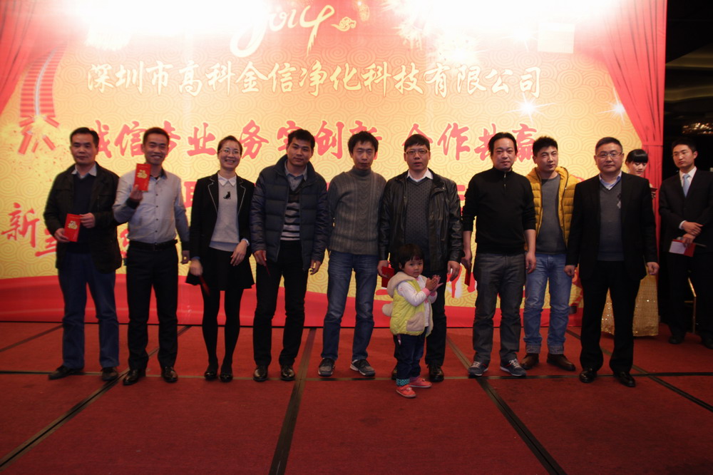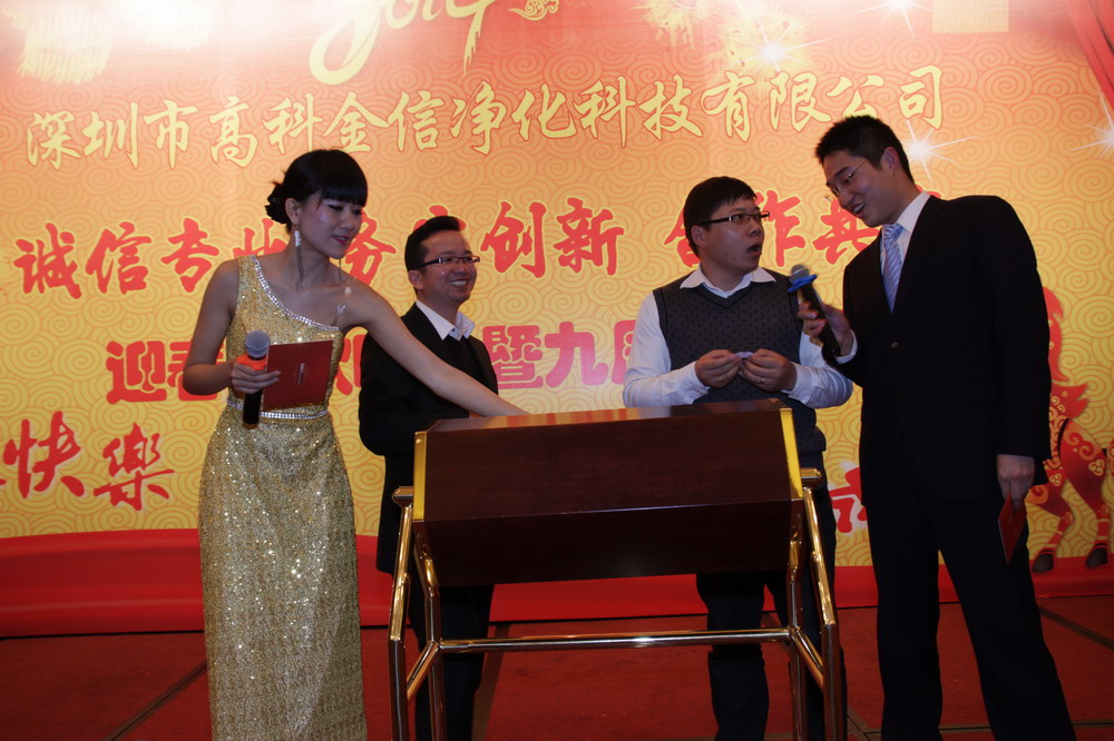 為提升高科金信大家庭的團隊凝聚力,總結(jié)表彰2013年各個部門的優(yōu)秀員工與團隊,鼓勵在新的一年里再接再勵,創(chuàng)造出更加輝煌的成績,讓公司在積極進取的良好氛圍中茁壯成長,并進駐更多行業(yè)領(lǐng)域,取得長遠綜合性發(fā)展,同時感謝一如既往支持和關(guān)心公司發(fā)展的嘉賓、客戶、協(xié)力廠商,公司于2014年1月15日晚上在深圳觀瀾格蘭云天國際大酒店3樓宴會廳舉行了“誠信專業(yè)、務(wù)實創(chuàng)新、合作共贏”2014迎春聯(lián)歡暨九周年慶典晚會。