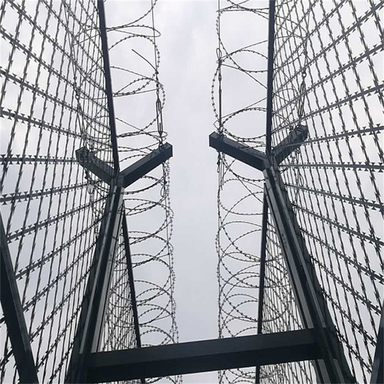 2.看守所防護(hù)網(wǎng)(監(jiān)獄鐵絲網(wǎng))蛇腹型刀刺網(wǎng)采用熱鍍鋅加噴塑(雙層防腐)塑層厚度0.2mm.