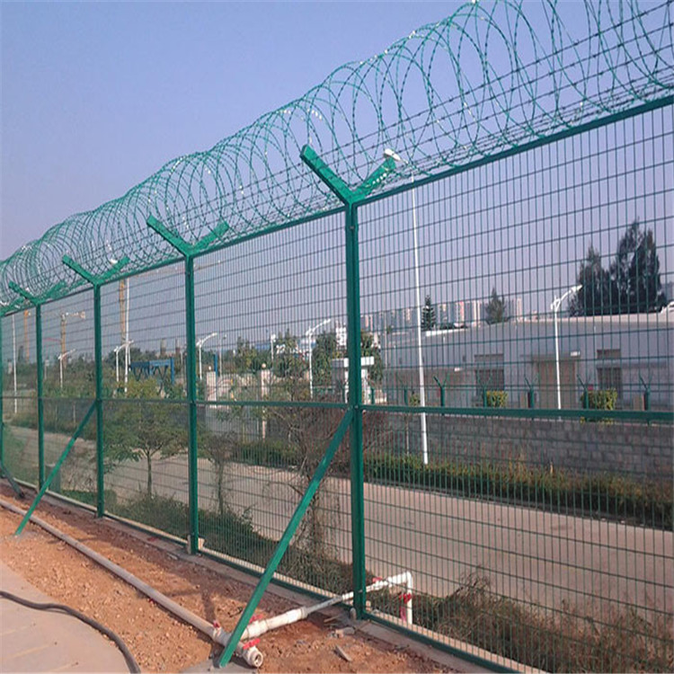 每次送別的時(shí)候雖然只是隔著一層護(hù)欄網(wǎng),但是看著飛機(jī)離去總是有種遙不可及的距離感,機(jī)場(chǎng)護(hù)欄網(wǎng)主要還是起到了防護(hù)的作用,并且包含了美觀、實(shí)用、方便運(yùn)輸和安裝的特點(diǎn)。一般的機(jī)場(chǎng)護(hù)欄網(wǎng)頂部都會(huì)加裝刀片刺絲、刀片刺繩后又很好的增強(qiáng)了安全防護(hù)性能。機(jī)場(chǎng)護(hù)欄網(wǎng)基本都會(huì)采用熱鍍、電鍍、噴塑、浸塑等方式進(jìn)行防腐,具有很好的抗老化、抗曬、耐候等特點(diǎn)。