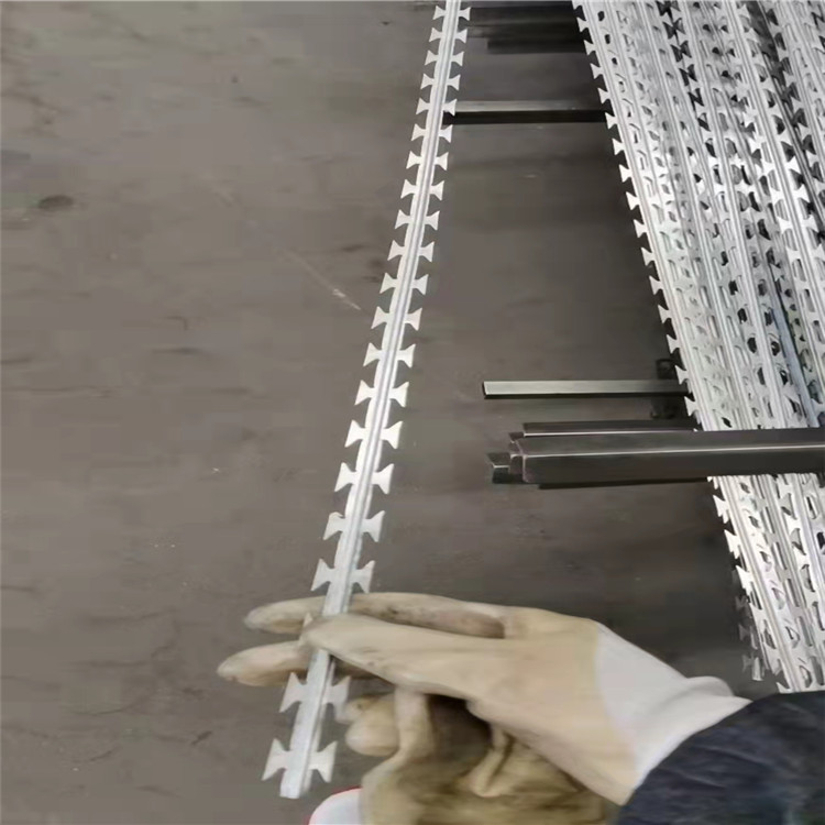 監(jiān)獄刀片刺繩是用在監(jiān)獄護(hù)欄網(wǎng)頂端的刀片刺繩,它是一種近年發(fā)展起來的防護(hù)、隔離能力較強(qiáng)的新型防護(hù)網(wǎng)產(chǎn)品。它采用鋼板沖壓成型包附于鋼絲之上,由銳利尖角鍍鋅鋼板或不銹鋼薄板做刀片,高張力鋼絲做芯線組合而成的。根據(jù)形狀可分為:螺旋式-刀片刺網(wǎng)、交叉式-刀刺網(wǎng)、平板式-刀片刺網(wǎng)、直線式-刀片刺網(wǎng)。被廣泛應(yīng)用在監(jiān)獄,機(jī)場,軍事基地等高安全場所。