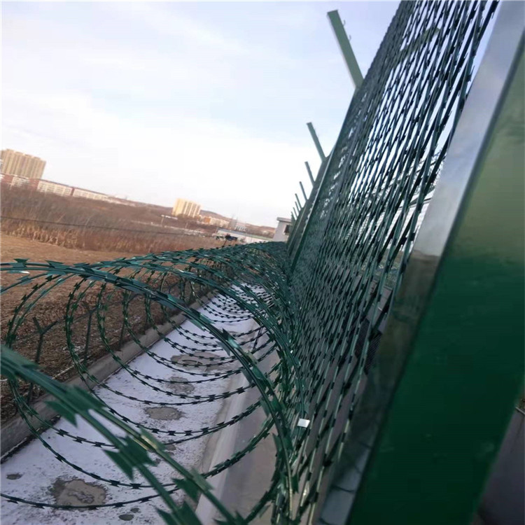 5. 網(wǎng)面:刀刺網(wǎng)護欄網(wǎng)的網(wǎng)面采用防腐噴涂工藝或電鍍鋅等處理方式,有效防止銹蝕和氧化,同時能夠保證在惡劣環(huán)境中的使用壽命。